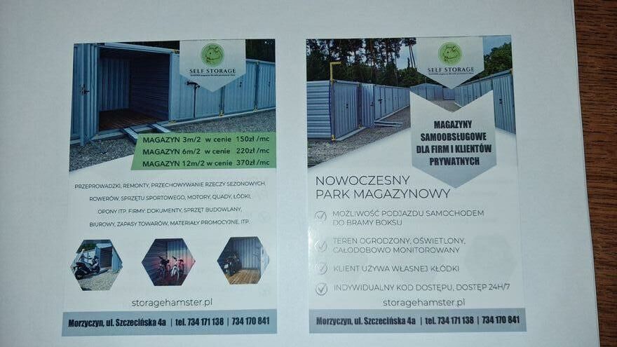 Oferta dotyczy magazynu o pow . 18 m/3 w cenie 370 zł netto / mcMagazyn znajduje się na ogrodzonym i monitorowanym terenie w Morzyczynie nad jeziorem Miedwie przy ul .Szczecińskiej 4 za komisami na przeciwko sklepu NETTO . Dostęp do swojego boksu posiadasz przez 48 godzin 7 dni w tygodniu .Trzy możliwości wjazdu : bramą na pilota , wpisaniem kodu w domofonie lub na tkz " pestkę "
