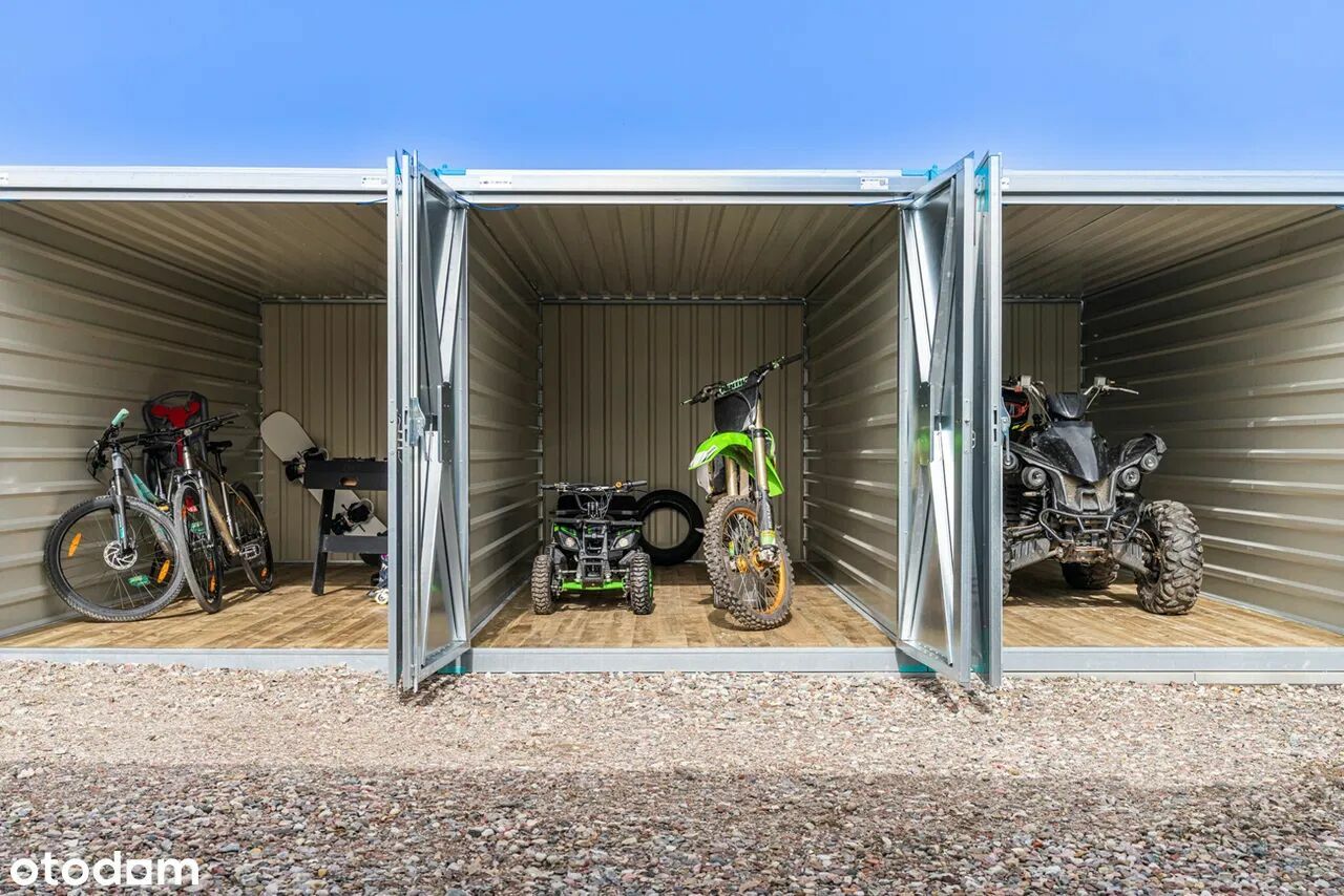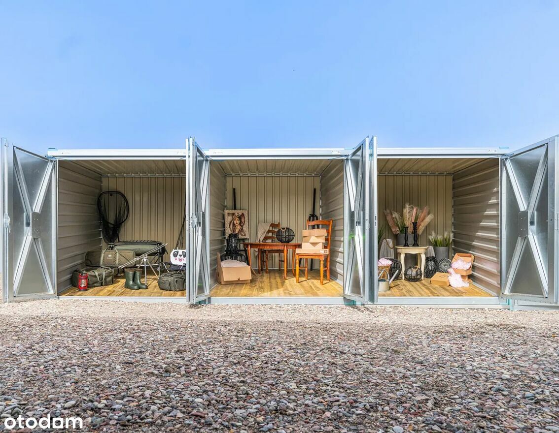 Nie są to blaszane garaże które zachodzą wilgocią i przemakają ! tylko profesjonalnie wykonane jednostki magazynowe wyposażone w specjalny system orynnowania , drewnianą podłogę o grubości 4 cm , a na całej powierzchni dachu zastosowano filc antykondensacyjny który zatrzymuje wilgoć przenikający do wewnątrz .
